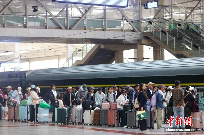 圖為拉薩火車站,學(xué)生排隊(duì)等候上車。武春燕 攝