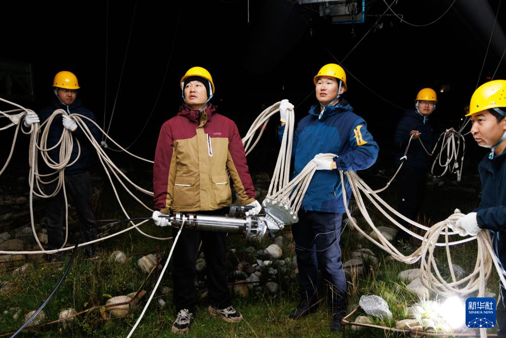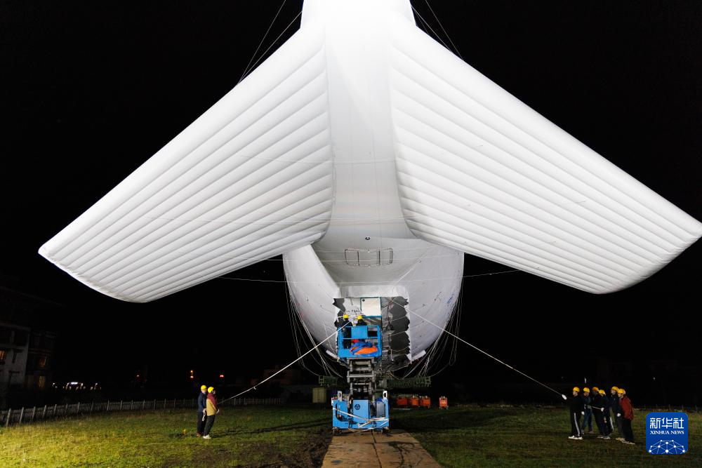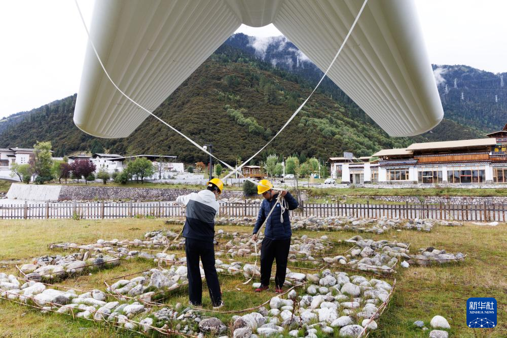 9月18日,“極目一號(hào)”浮空艇大氣觀測(cè)試驗(yàn)現(xiàn)場(chǎng),科研人員在操作輔助系索。新華社記者 金立旺 攝