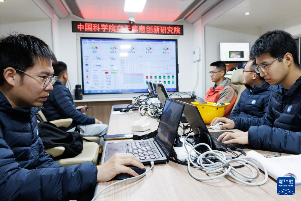 9月18日,“極目一號(hào)”浮空艇大氣觀測(cè)試驗(yàn)現(xiàn)場(chǎng)控制室,科研人員在觀察試驗(yàn)進(jìn)展。新華社記者 金立旺 攝