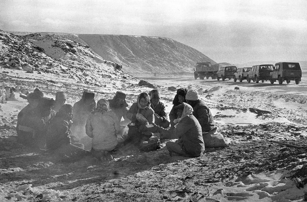 109道班工人風(fēng)餐露宿,化冰燒茶,雪拌糌粑,習(xí)以為常。 (1991年1月5日發(fā))
