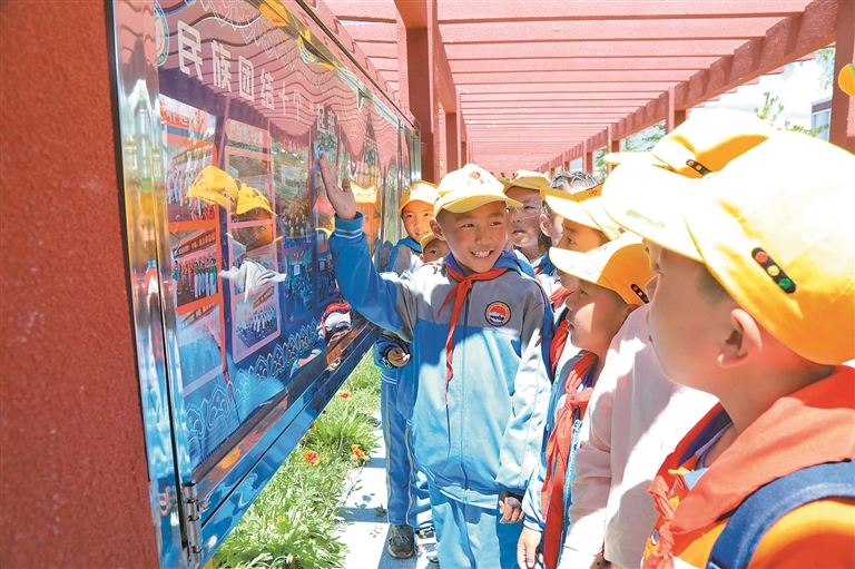 拉薩市墨竹工卡縣南京實驗小學學生參觀“民族團結(jié)教育主題公園”主題苑。記者 唐斌 通訊員 洛克 攝