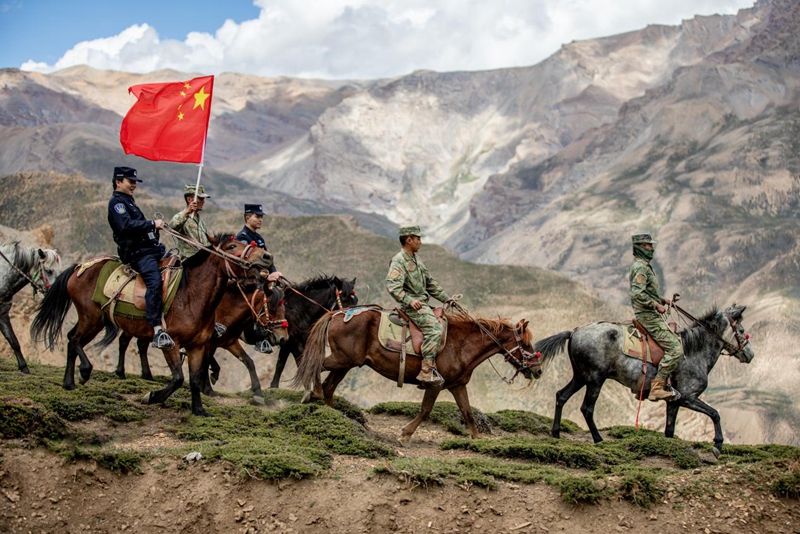 更艱險(xiǎn)的巡邊路,隱沒在海拔5000米的峭壁之上。民警、戰(zhàn)士與村民騎著馬,在絕壁間逶迤前行,落石與暗冰隨時(shí)可能出現(xiàn)。次仁多布杰輕撫馬鬃,聲音如雪山般沉穩(wěn):“我父親的父親的父親就在這里出生,這里必須有人守。我住,我的孩子也要??!若無人守邊,何人護(hù)國?”作為受人尊敬的村醫(yī),他本可退休進(jìn)城,安享優(yōu)渥。但他依然選擇守護(hù)這片土地。