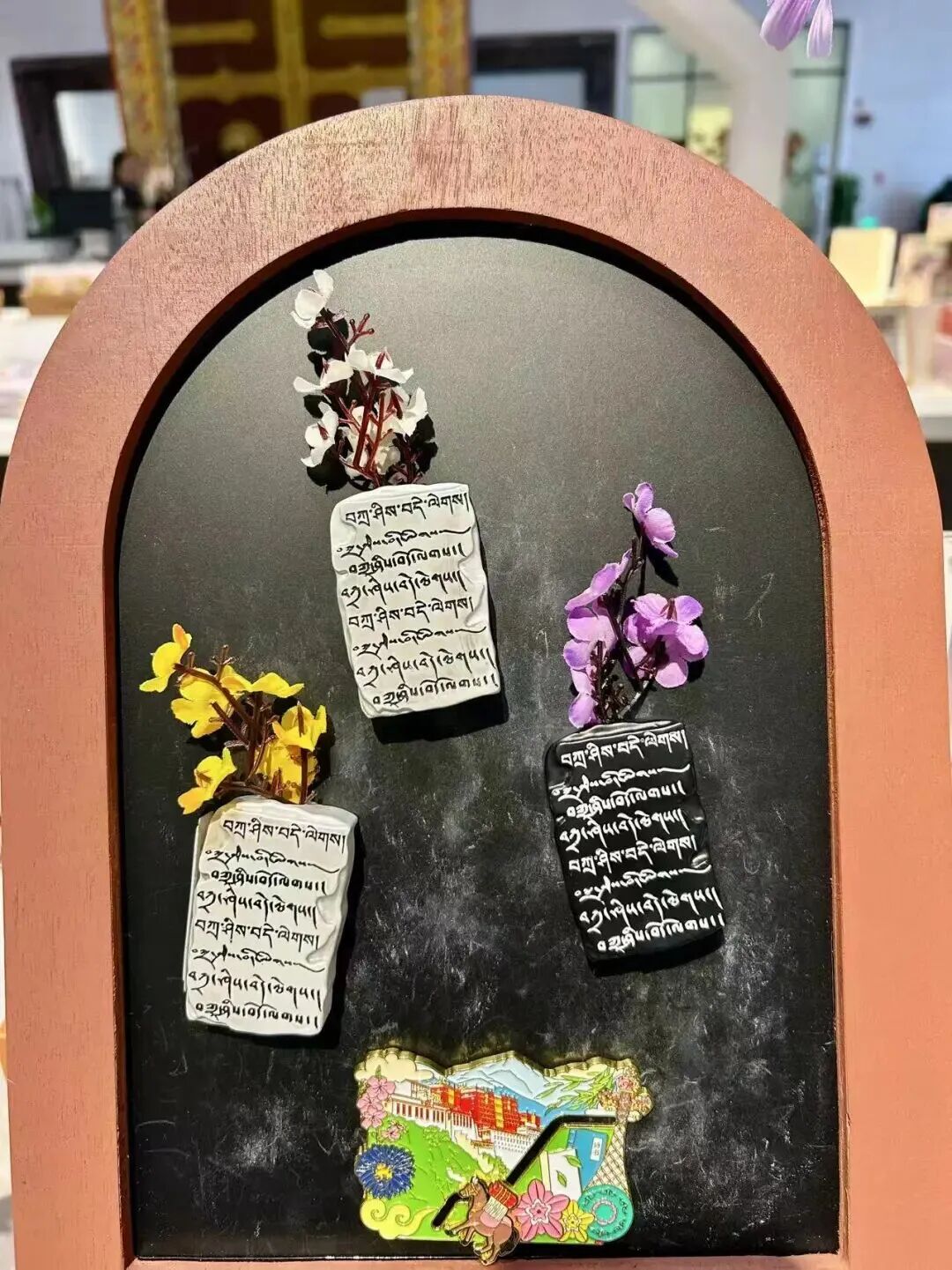 在社交平臺(tái)上,西藏博物館的花瓶款冰箱貼火出了圈。“必買”“太絕了”——網(wǎng)友們的評(píng)價(jià)道出了它的獨(dú)特魅力。黑白兩色的設(shè)計(jì),巧妙融入了插花功能,創(chuàng)意源自西藏傳統(tǒng)石刻藝術(shù)與吉祥祝福語(yǔ)?!霸鞯吕铡辈寤ū滟N,不僅是一件文創(chuàng)產(chǎn)品,更是對(duì)美好生活最真誠(chéng)的祝愿。