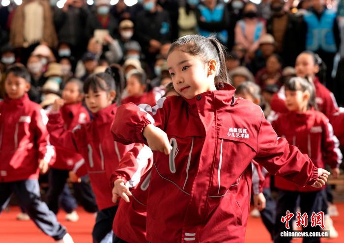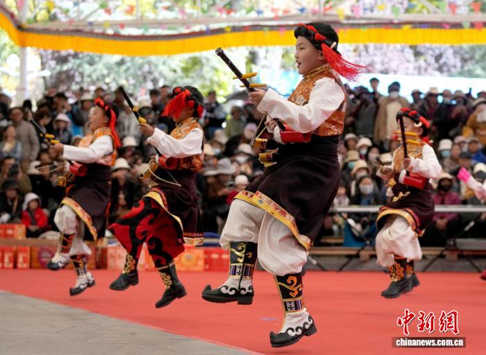 圖為西藏青少年校外實踐教育成果匯報展上的舞臺藝術展演。李林 攝