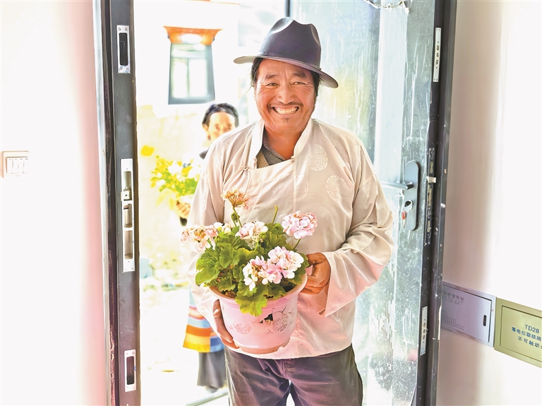 拉孜縣查務(wù)鄉(xiāng)那布西村群眾搬入新居。記者 楊子彥 攝