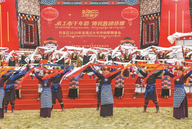 11月21日(工布新年大年初一),在林芝市巴宜區(qū)依舍莊園,“承工布千年韻 鑄民族團結情”——巴宜區(qū)2026年“非遺過大年”傳統(tǒng)歌舞盛會精彩上演。整場演出圍繞工布年味、非遺傳承、民族團結三大主題,分設“歲月如歌·福滿工布”“匠心歡歌·情系家園”“團結歡歌·共譜華章”三大篇章,20余個節(jié)目涵蓋男女聲獨唱、民俗舞蹈、器樂演奏等多種表演形式,將高原獨特民俗風情與深厚文化底蘊相融合,為市民游客帶來了一場具有民族特色的視聽盛宴。