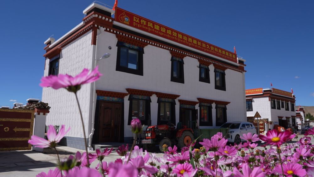 這是2025年8月14日在定日縣曲洛鄉(xiāng)措昂村拍攝的恢復(fù)重建房屋。