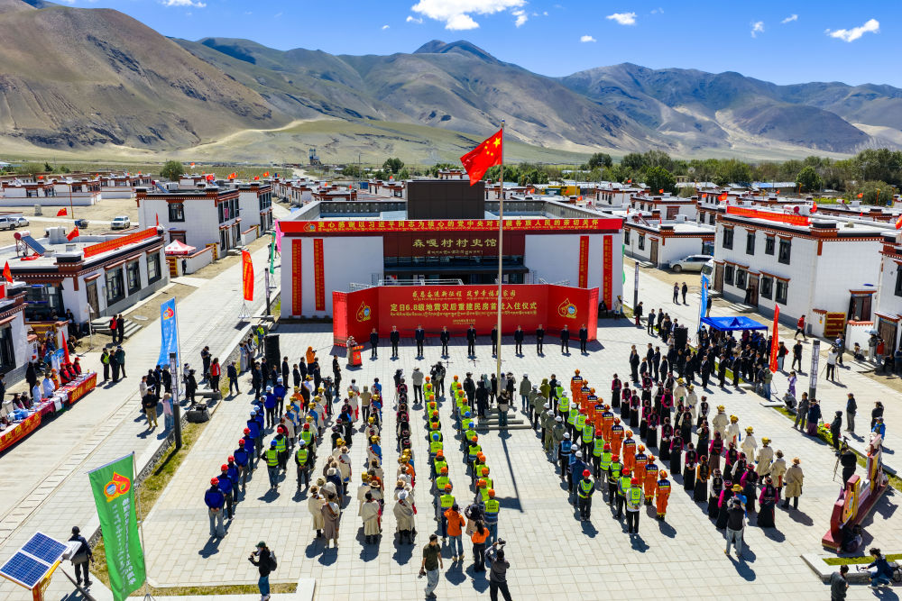 2025年8月15日,定日縣長所鄉(xiāng)森嘎村舉行“定日6.8級地震災(zāi)后恢復(fù)重建民房首批入住儀式”(無人機照片)。