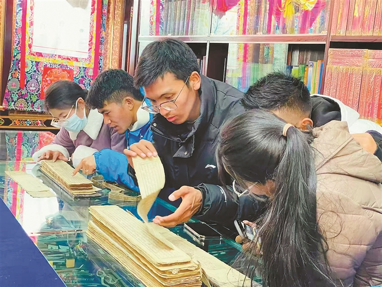 學生在藏醫(yī)展館翻閱藏醫(yī)藥技藝配方。