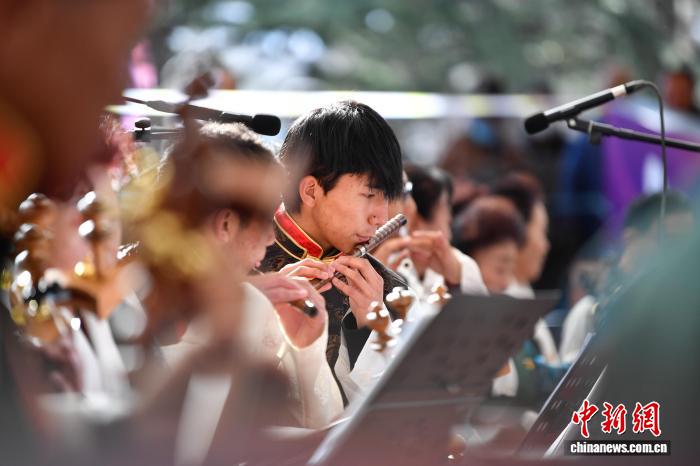 圖為群眾音樂會(huì),民樂合奏《我的家鄉(xiāng)好》精彩上演。中新社記者 貢嘎來松 攝
