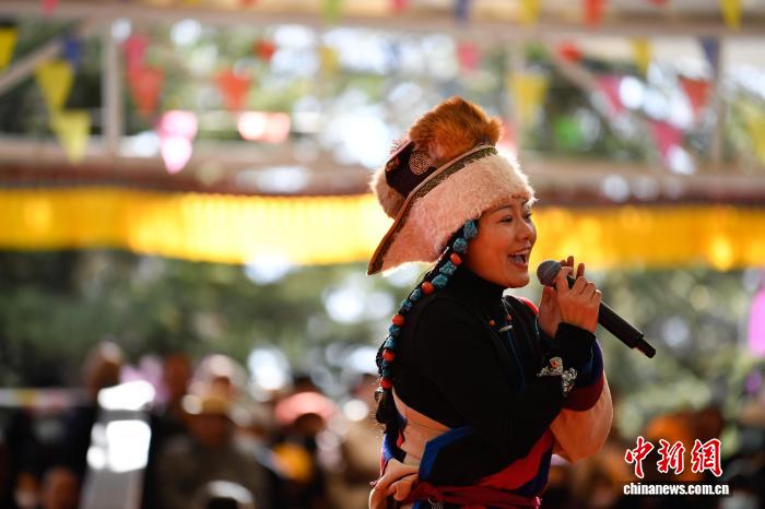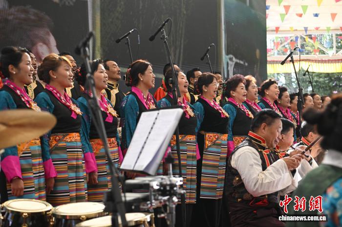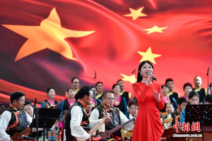 圖為群眾音樂會(huì)獨(dú)唱《祝福祖國(guó)》。中新社記者 貢嘎來松 攝