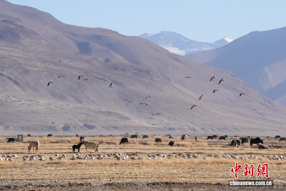 2025年1月7日,西藏定日發(fā)生6.8級地震,時隔近一年,12月24日,中新社記者探訪災后重建。日喀則森嘎村的藏式新房錯落有致,柏油路連通家家戶戶,屋頂太陽能熱水器整齊排列,炊煙裊裊間滿是生機。據悉,此次日喀則地震災后重建覆蓋7縣47鄉(xiāng)鎮(zhèn)486村,2.2萬余戶重建民房、1.05萬余戶維修加固民房已全部竣工交付,受災民眾喜遷新居。圖為森嘎村境內的農田里斑頭雁在覓食。中新社記者 貢嘎來松 攝