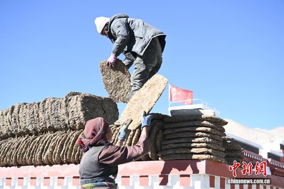2025年1月7日,西藏定日發(fā)生6.8級地震,時隔近一年,12月24日,中新社記者探訪災后重建。日喀則森嘎村的藏式新房錯落有致,柏油路連通家家戶戶,屋頂太陽能熱水器整齊排列,炊煙裊裊間滿是生機。據悉,此次日喀則地震災后重建覆蓋7縣47鄉(xiāng)鎮(zhèn)486村,2.2萬余戶重建民房、1.05萬余戶維修加固民房已全部竣工交付,受災民眾喜遷新居。圖為重建后的森嘎村村民在自家的新房圍墻上擺放干牛糞。中新社記者 貢嘎來松 攝