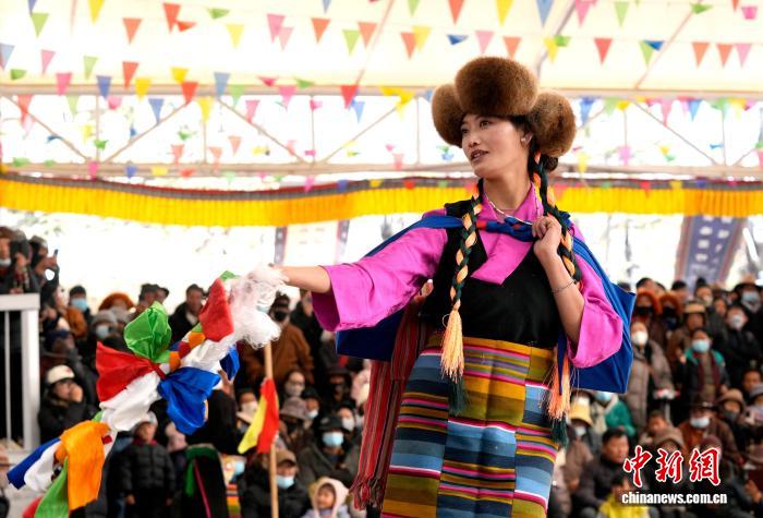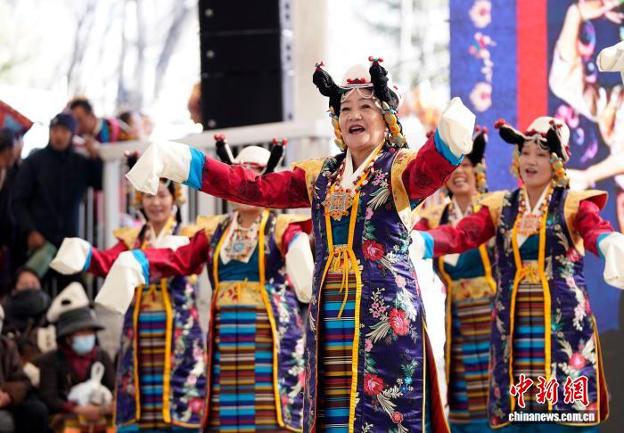1月2日,“新歲風華,衣彩拉薩”2026年拉薩新年服飾秀子活動在布達拉宮腳下的宗角祿康公園舉行?;顒臃譃槔_非物質(zhì)文化遺產(chǎn)代表性項目演藝服飾秀與農(nóng)牧民婦女“村T”秀兩部分,通過演藝服飾與日常生活勞動服飾及場景的展示,生動呈現(xiàn)拉薩獨特的地域文化與民族風情。圖為拉薩非物質(zhì)文化遺產(chǎn)代表性項目演藝服飾秀現(xiàn)場。中新社記者 李林 攝