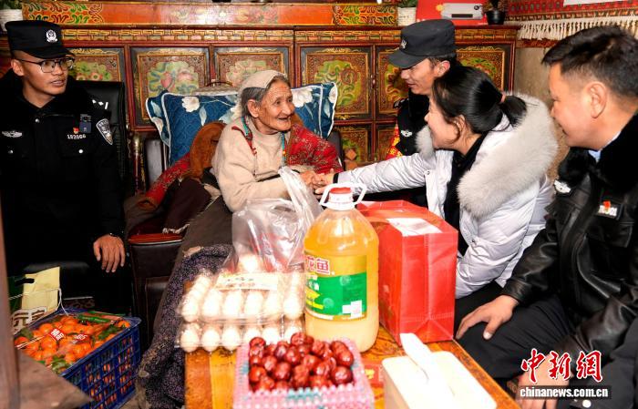 圖為那曲站派出所民警在羅馬鎮(zhèn)村民卡珠家里慰問。李林?jǐn)z
