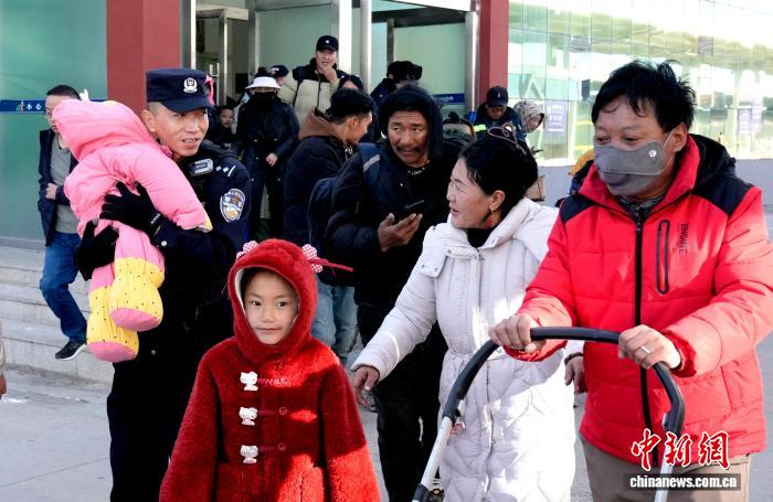 圖為那曲站派出所民警幫助進(jìn)站老百姓。李林?jǐn)z