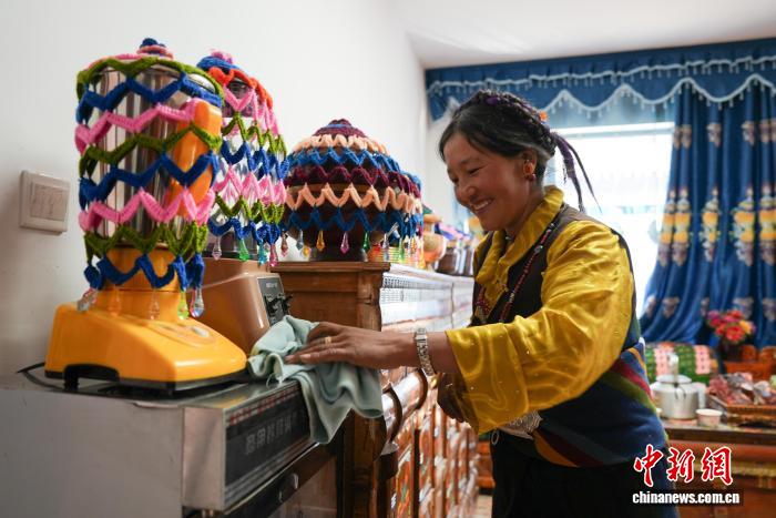 村民多布杰在森嘎村經(jīng)營著一家甜茶館。從安置板房搬進(jìn)牢固的新居后,生活重回正軌。他在自家院中建起陽光棚開門迎客,每日顧客絡(luò)繹不絕。“新房寬敞,通了自來水,裝了太陽能熱水器,房子都是鋼筋水泥建的,住著不害怕了?!闭劶澳菆鰹?zāi)難,他輕聲說:“只是偶爾想起離開的長輩和發(fā)小,心里還是會難過。”