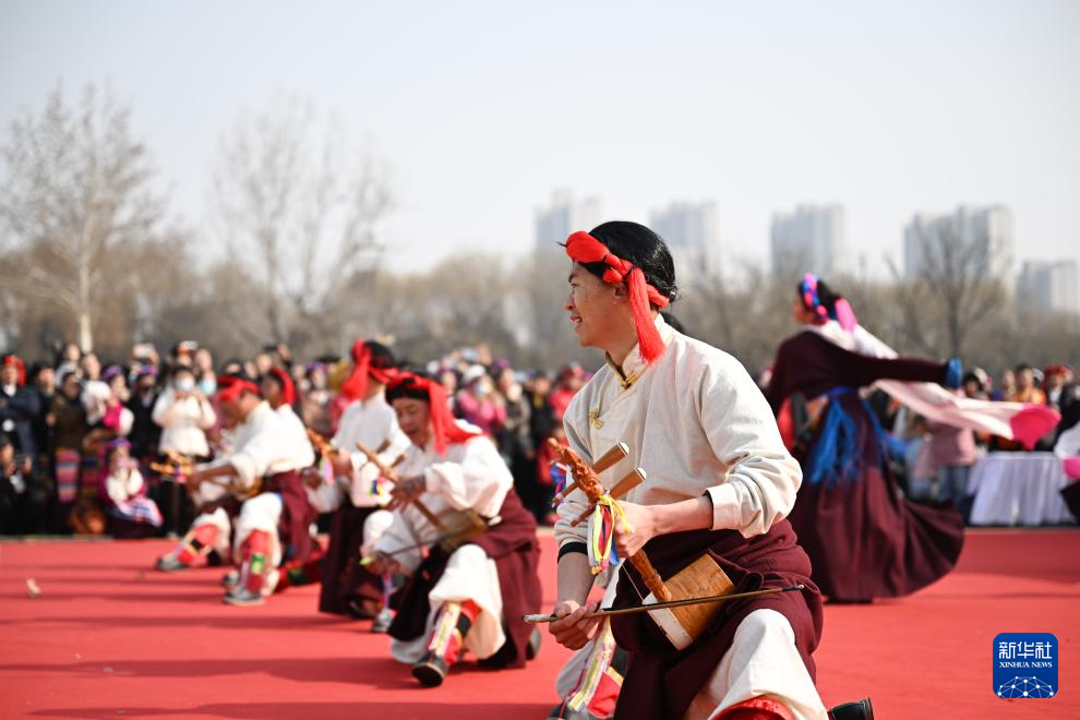 1月17日,一場(chǎng)藏族非遺展演在西安大明宮國(guó)家遺址公園舉行,來自西藏自治區(qū)昌都市基層文藝團(tuán)體的演員用精彩的節(jié)目展示藏族文化魅力。新華社記者 張博文 攝