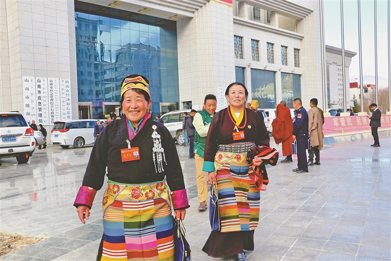 山南市政協(xié)委員參會結(jié)束后走出會場。