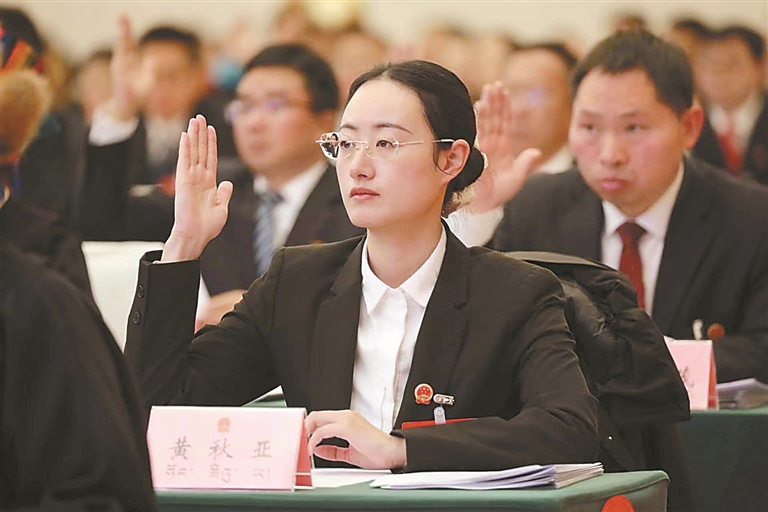 圖為山南市人大代表舉手表決政府工作報(bào)告。