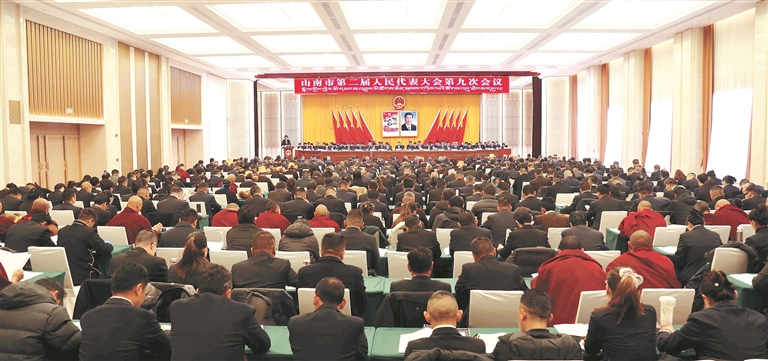 圖為山南市第二屆人民代表大會第九次會議現(xiàn)場。