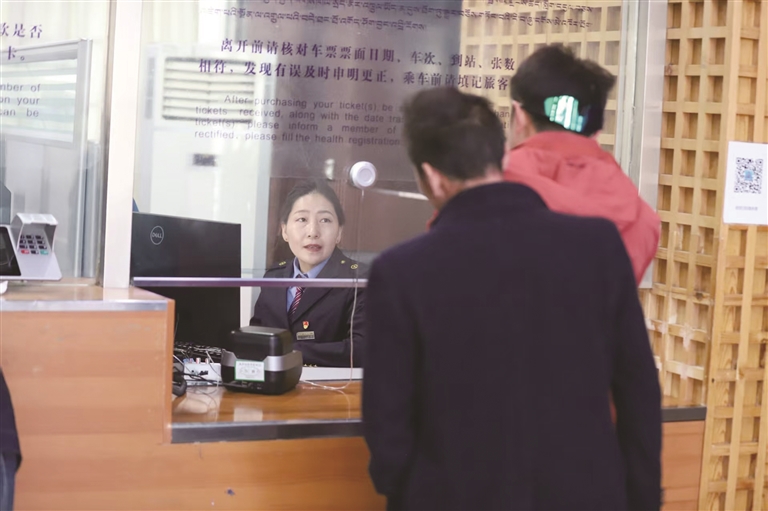 旅客正在購票。格桑央金供圖