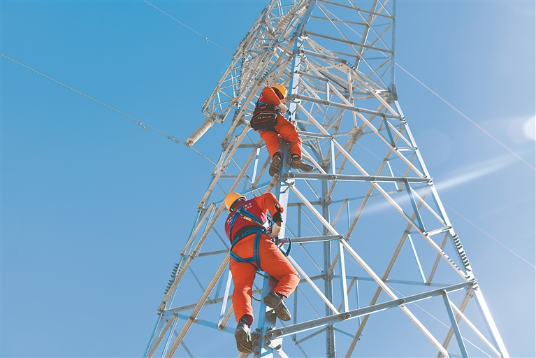 圖為電力工人在搶修線路。