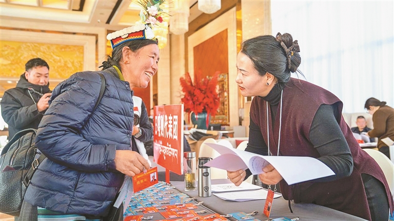 “這是您的會議資料,請拿好。”拉薩飯店報(bào)到處,在工作人員引導(dǎo)下,代表們依次簽到。