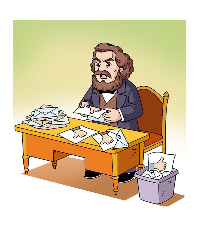 馬克思在一封信里說:“由于厭惡一切個(gè)人崇拜,在國際存在時(shí)期,我從來不公布那許許多多來自各國的、使我厭煩的歌功頌德的東西;我甚至從來不予答復(fù),偶爾答復(fù),也只是加以斥責(zé)?!?蘇凝/畫