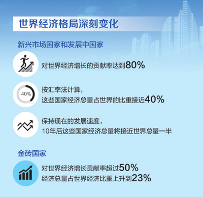 上一個百年是世界發(fā)生巨變的百年,是人類歷史上驚心動魄的百年。就世界秩序而言,最大的變動是發(fā)生了兩次世界大戰(zhàn),美國成為世界上最強大的國家,西方集團確立。還有一個變動就是俄國十月革命爆發(fā),蘇聯(lián)成為世界上第一個社會主義國家,世界社會主義興起,社會主義陣營出現(xiàn)。第二次世界大戰(zhàn)后,兩方面力量在冷戰(zhàn)中對峙了幾十年,最終以東歐劇變、蘇聯(lián)解體而結束,美國成為世界上唯一超級大國。同時,還有一個變動影響巨大,那就是民族獨立運動興起,資本主義殖民體系瓦解,發(fā)展中國家紛紛實現(xiàn)民族獨立。伴隨著經(jīng)濟全球化加速推進,不少發(fā)展中國家獲得長足發(fā)展,新興市場國家和發(fā)展中國家整體力量呈現(xiàn)上升趨勢。