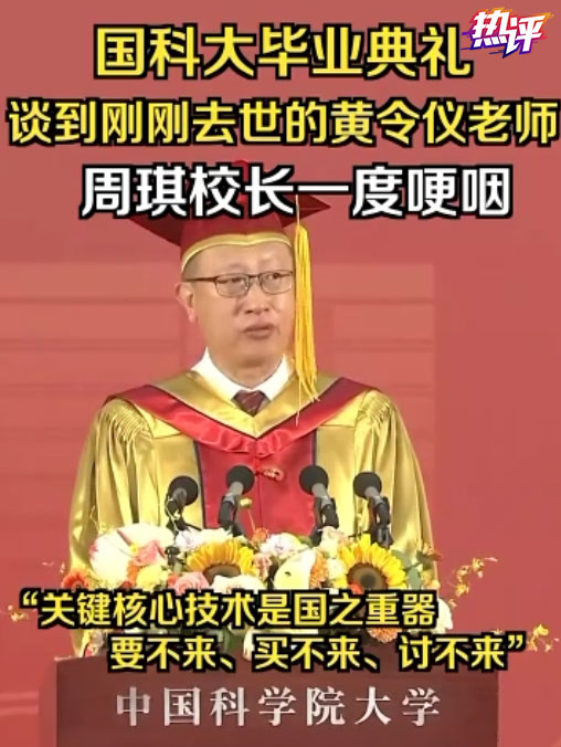 濃烈的家國情懷,是老師們在畢業(yè)致辭里不約而同地真情流露。在中國人民大學(xué),校長林尚立引用吳玉章老校長寄語人大第一屆畢業(yè)生的一段話,勉勵學(xué)生站到強國建設(shè)、民族復(fù)興新征程的最前列。在中國科學(xué)院大學(xué),校長周琪講起堅守芯片研發(fā)一線數(shù)十年、不久前去世的微電子所研究員黃令儀老師,幾度哽咽。每一所大學(xué)都有其獨特的氣質(zhì)和底蘊,校長帶領(lǐng)學(xué)生回顧校史、銘記過往,不僅在學(xué)生心里種下大學(xué)的精神種子,也引領(lǐng)學(xué)生將追求個人價值與實現(xiàn)社會價值緊密聯(lián)結(jié)在一起。