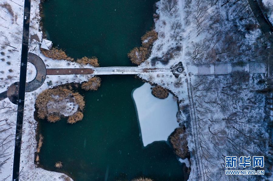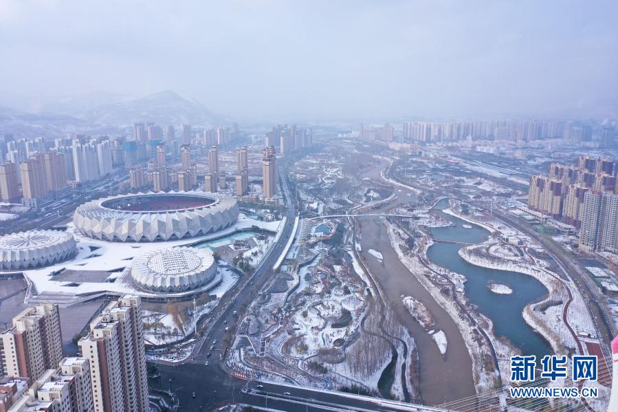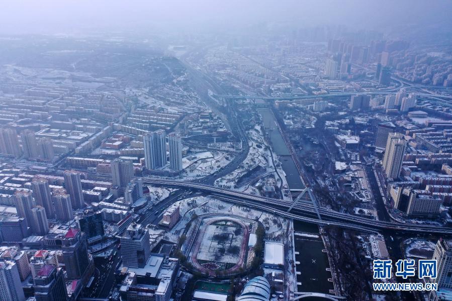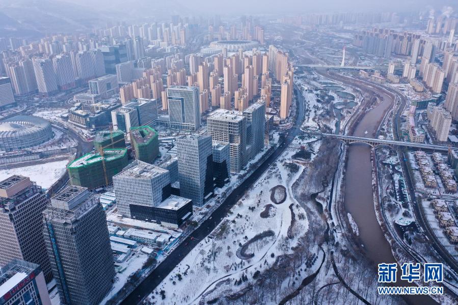 受北方冷空氣影響,11月20日夜間,青海省東北部出現(xiàn)降雪、降溫天氣過程。雪后從空中俯瞰,高原古城西寧被白雪覆蓋。