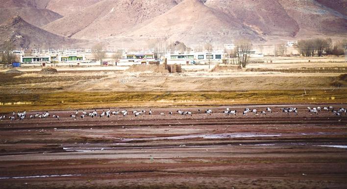 又是一年遷徙季,又是一年觀鶴時。為了繁殖和越冬,候鳥黑頸鶴每年都會進行兩次遷徙。黑頸鶴是國家一級保護動物,藏語為“沖沖”,被藏族人民譽為“吉祥鳥”。每年入冬,成群的黑頸鶴從藏北遷徙至拉薩河及雅魯藏布江流域等地越冬,次年3月中旬北上繁殖。目前,已進入越冬季,成群結(jié)隊的黑頸鶴已在拉薩市林周縣境內(nèi)如期赴約。