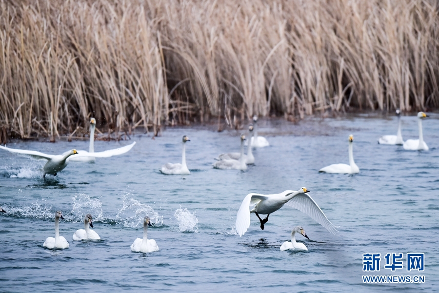 冬季,幾只天鵝在青海省海南藏族自治州貴德縣黃河濕地嬉戲。(資料圖)新華社記者 吳剛攝