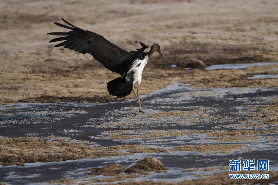 黑鸛現(xiàn)身青海西寧