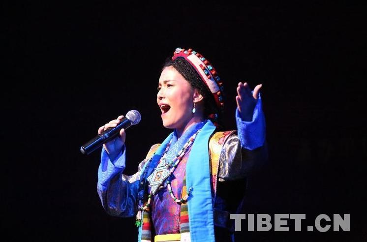 圖為開幕式現(xiàn)場歌手傾情演唱首屆西藏文化藝術(shù)節(jié)主題曲《格桑花開》 攝影:王佳豪