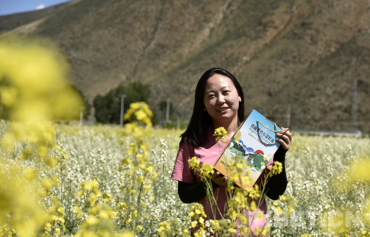 圖為墨竹工卡縣松贊文化旅游節(jié)暨第五屆油菜花節(jié)開幕式后,現(xiàn)場(chǎng)觀眾手捧有幸抽到的開幕式紀(jì)念品在油菜花海中留影 攝影:王媛媛