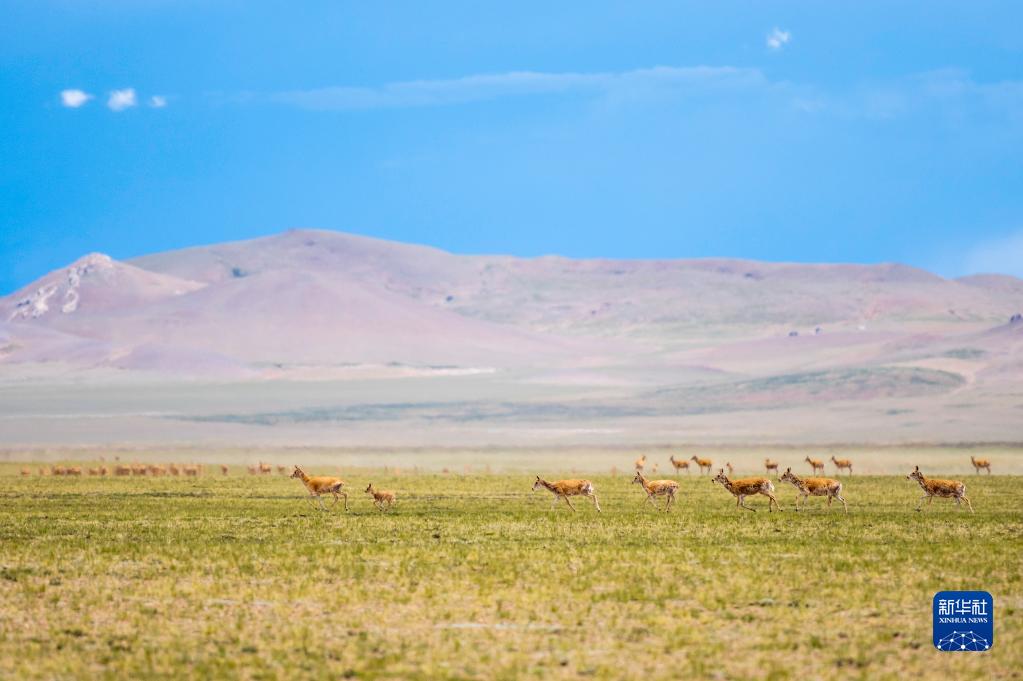 這是在羌塘國家級自然保護區(qū)內(nèi)拍攝的藏羚羊(7月11日攝)。新華社記者 周荻瀟 攝