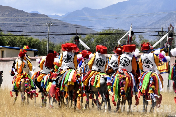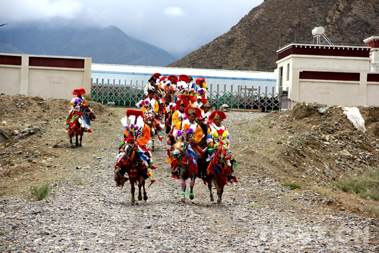 “望果節(jié)”從遠古走來,是西藏人民敬畏自然、禮贊生命、寄托祝福的節(jié)日?!袄怠蓖猓T手們和村里德高望重的老人們正在吟唱古老的民歌,祈求風(fēng)調(diào)雨順、莊稼豐收。一聲“杰杰嗦嗦,拉嗦啰”后,糌粑粉被高高拋撒,騎手們即將出發(fā)。