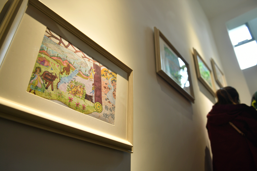 圖為祁連山國家公園青海片區(qū)展陳中心內展出的兒童繪畫作品。