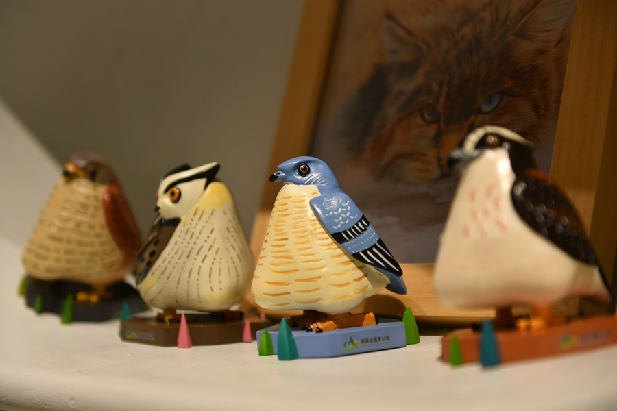 圖為祁連山國家公園青海片區(qū)展陳中心內展出的特色文創(chuàng)產(chǎn)品。