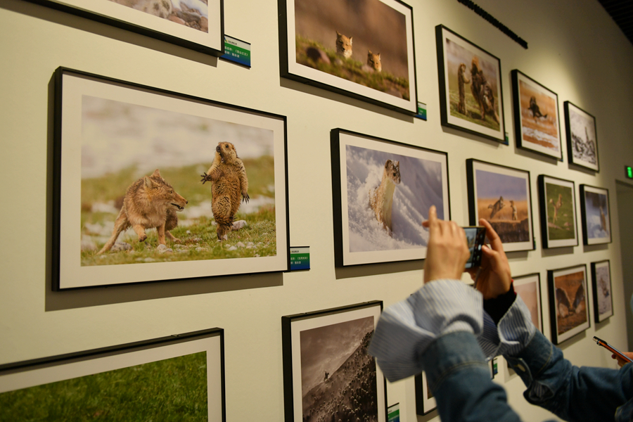 圖為祁連山國家公園青海片區(qū)展陳中心內展出的攝影作品。