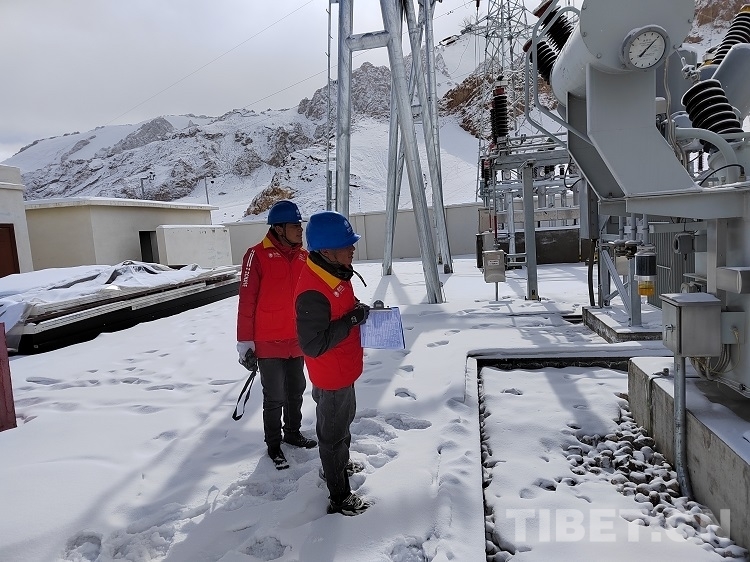 圖為西藏阿里供電公司變電中心工作人員雪后進(jìn)行隱患排查工作 攝影:阿旺朗杰