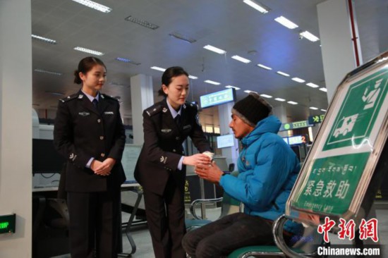 2018年12月,吉隆出入境邊防檢查站移民管理警察熱情服務(wù)緊急救助旅客?!⌒じ毁F 攝