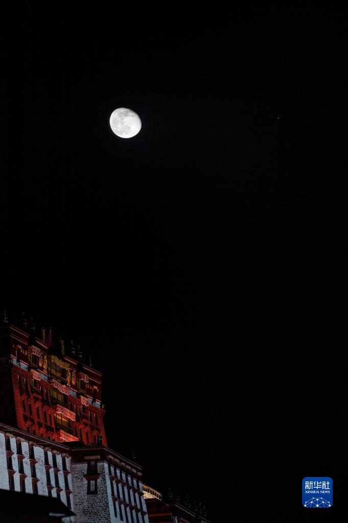 11月11日晚,一次賞心悅目的火星合月亮相天宇。這是在西藏拉薩市布達(dá)拉宮附近,記錄下的這幕“星月童話”。新華社記者 孫非 攝