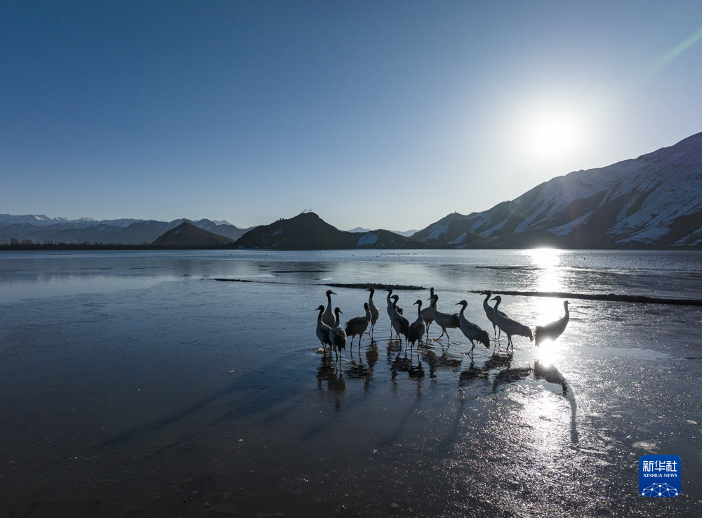 近日,西藏拉薩市各區(qū)縣迎來降雪。群山被白雪覆蓋,高原壯麗唯美。黑頸鶴、斑頭雁等翩躚起舞,拉薩河谷生機盎然。