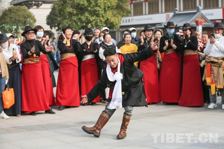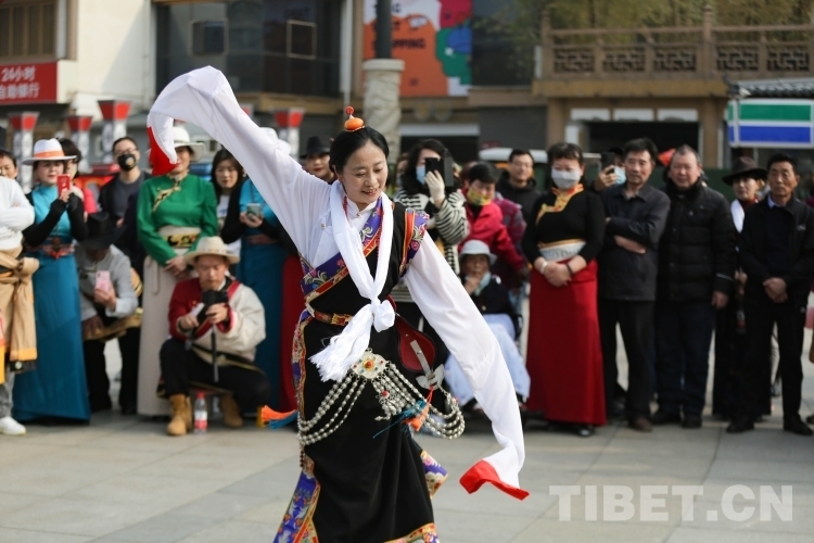 中國(guó)西藏網(wǎng)訊 3月21日,由新的社會(huì)階層人士服務(wù)團(tuán)三分團(tuán)主辦、北京藏地神韻非物質(zhì)文化傳播發(fā)展公司承辦的傳統(tǒng)藏舞公益推廣活動(dòng)在西安舉辦。多位藏舞傳承人與藏舞愛(ài)好者齊聚西安大唐西市進(jìn)行公益推廣交流。鍋莊、伊舞,《歡迎你們到來(lái)》《舞動(dòng)青春年華》《吉祥的哈達(dá)》……一曲接著一曲,舞出了藏族舞蹈的無(wú)限魅力?。ㄖ袊?guó)西藏網(wǎng) 記者/呂靜 姚浩然)