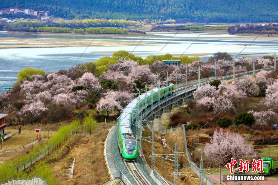 近日,中國(guó)鐵路青藏集團(tuán)有限公司介紹,3月下旬至4月,拉林鐵路沿線綿延的野生桃花林盛開(kāi),藍(lán)天、白云、桃花、雪山、高原復(fù)興號(hào)動(dòng)車等相互交織,形成了一幅幅美不勝收的畫面。[詳細(xì)]