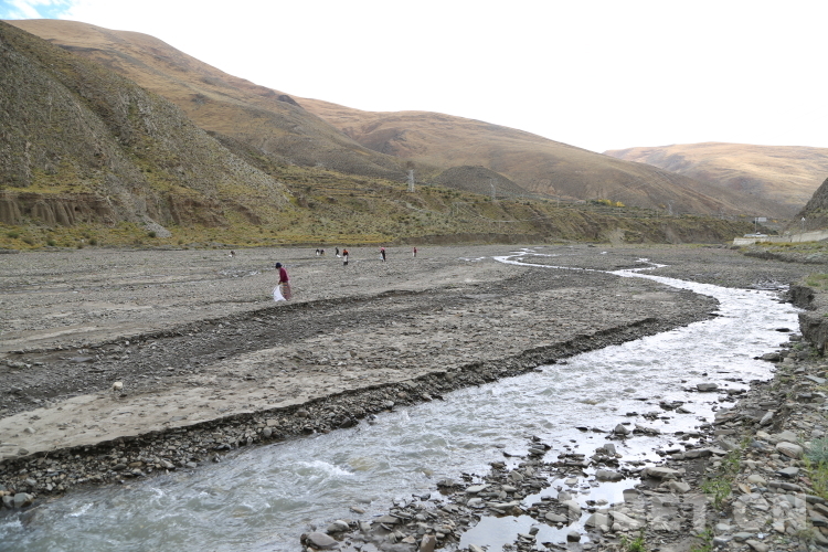圖為瓊結(jié)縣瓊結(jié)鎮(zhèn)雪康社區(qū)群眾自發(fā)清理河道,守護(hù)一江碧水 攝影:曲杰
