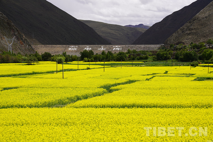 圖為瓊結(jié)縣瓊果水庫(kù)下游農(nóng)田開(kāi)滿油菜花 攝影:曲杰